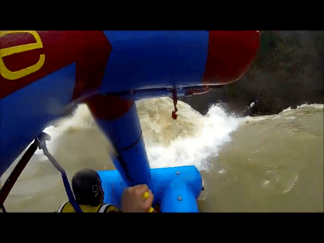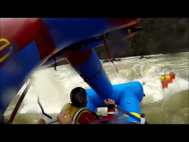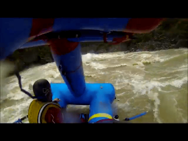 The hole was one of the strangest features I had seen, and I was able to get one good forward stroke in before we dropped into the meat. It swallowed our boat, and we spent a very violent time down there mostly underwater. I had the ride of my life along with Kelsey in the backseat in rapid #29. Don’t flip above that rapid if you think you’re going to have a hard time righting your boat back upright. We surfed on our top for a LONG time. Eventually we would bounce up and do a barrel roll just long enough to get a partial breath and get sucked back under water. Our feet were out of the foot cups since we had just rolled a couple seconds before dropping in. This may have been part of the issue with the boat. Also I was in the Rescue Craft which is outfitted for a motor. Part of the back floor is cut out. Not sure if this would be part of the issue of upside down surfing or not.